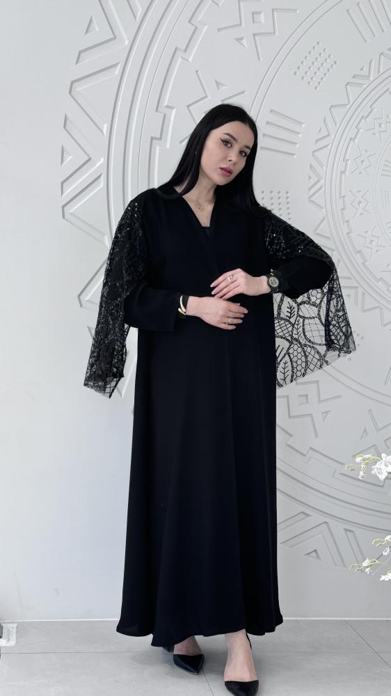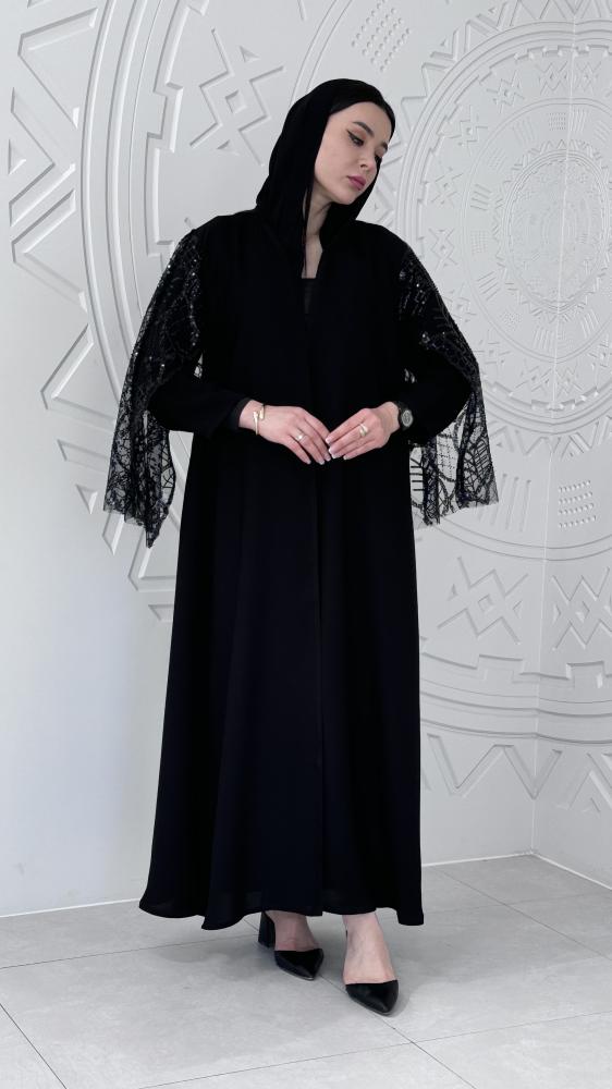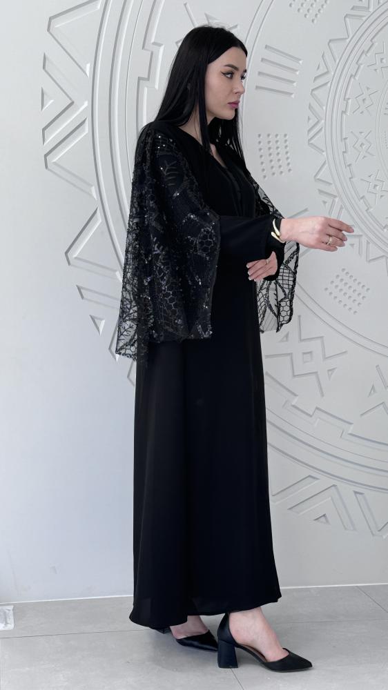 عباية كريب سوداء مع شك اسود على الاكمام